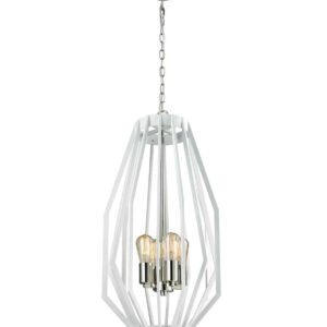 CLA GAMBA: Industrial White Rustic Narrow Angular Cage Pendant Light