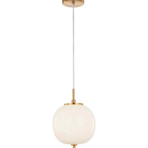 PENDANT SES 10W Round Opal (Matt Finish) Glass w/Brass Highlight OD185mm x H290mm