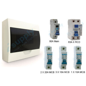 $131.99 inc GSTSwitchboard Combination for 12 pole switchboard 1x 12 pole Surface Mount Distribution Board 1 x 12 Way Wall Mount Switch Board 1 x 80 amp Main breaker / Isolator 1 x 63 amp 2 Pole RCD 6 KA 3 x 20 amp circuit breaker— Stove / Oven – Hot water / Aircon 3 x 16…