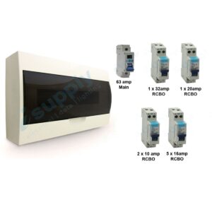 $215.99 inc GSTSwitchboard Combination for UNIT 18 pole Surface, RCD MCB Loaded 1x 18 pole switchboard 1x 18 pole Surface Mount Distribution Board 1x 63A 1p Main switch 1x 32A 1p RCBO— Stove / Oven 1x 20A 1p RCBO– Hot Water / Air Con 5x 16A 2p RCBO– Lights / Powerpoints 2x 10A 1p RCBO— Lights /…