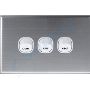 DEXTON 3 Gang Wall Switch – LIGHT FAN HEAT – Stainless Steel Cover DXWS/LFH/ASC
