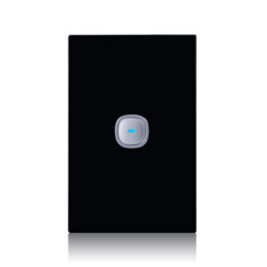 Transco Glass single gang switch with built-in LED push button black S1G/B