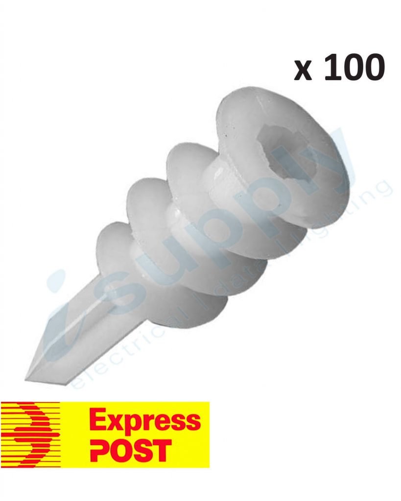 100 x Nylon Nail In Plug Mushroom head Masonry Anchor Tappets 6mm x 50mm EXPRESS