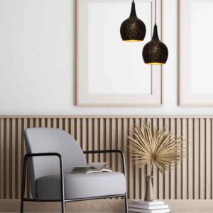 PENDANT ES 40W BLK Embossed BELL w/Gold Interior OD 200mm