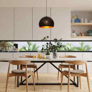PENDANT ES 40W BLK Embossed DOME w/Gold Interior OD350mm
