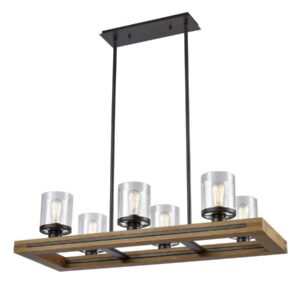 PENDANT ESx6 Warm Chestnut Wood RECT w/Clr Glass L1035mm
