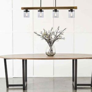 PENDANT ESx4 Warm Chestnut Wood BAR w/Clr Glass L1280mm