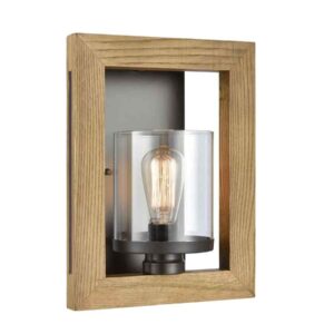 WALL Int S/M ES RECT Frame Chestnut Wood CLR Glass Shade