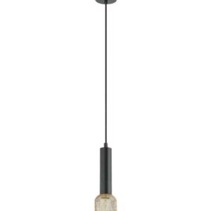 PENDANT SES OD75mm H250mm Cylinder M/Blk w/Brass Mesh