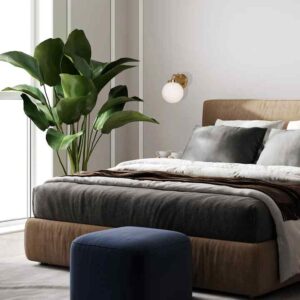 WALL Int S/M ES 1 x WH SPHERE Alabaster w/Brass Highlight & RND Base OD140mm
