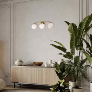 WALL Int S/M ES 3 x WH SPHERE Alabaster w/Brass Highlight & RND Base OD140mm