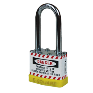 Lockout padlock with all metal construction for extra strength and durability Steel body and shackle Danger label Ownership label