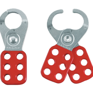Traditional style lockout/tagout scissor hasp for up to 6 locks Plated Steel Lockout Hasp with Red Vinyl Coating Suits padlocks up to 9mm shackle diameter 25mm diameter jaws