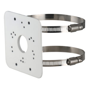 Heavy duty coated aluminium pole mount bracket for surveillance cameras with two clamps. Adjustable from Ø80~150mm. See bracket compatibility guide below for product compatibility. Specifications Connection Bracket Type: Pole Pole Diameter: Ø80~150mm Load Bearing Capacity: 3.00kg Pipe Thread: N/A General Materials: Aluminium Weather Resistance: N/A Operating Conditions: -40° ~ 60°C / 90% RH (max) Dimensions:…