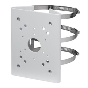 Heavy duty coated SECC pole mount bracket for large surveillance cameras with three clamps. Adjustable from Ø80~150mm. See bracket compatibility guide below for product compatibility. Specifications Connection Bracket Type: Pole Pole Diameter: Ø80~150mm Load Bearing Capacity: 10.00kg Pipe Thread: N/A General Materials: SECC Weather Resistance: N/A Operating Conditions: -40° ~ 60°C / 90% RH (max)…