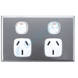 $20.21 inc GSTDouble powerpoint 10a with silver brushed stainless steel cover plate Double powerpoint 10a with silver brushed stainless steel cover plate ( comes complete with cover and screws)/p> Quantity: 1 Condition: Brand new, original packaging Dimensions: 75mm x 120mm x 12mm Includes: Backing plate, removable cover, and screws Compatibility: Most standard wall plates and mounting blocks…