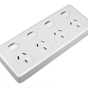 Transco Power Point Quad 10a Double Pole P4D. These outlets are designed for surface mounting and can easily attach to existing power point mounting brackets. Dimensions are approximately 78mm in height, 198mm in width, and 25mm in depth. Australian Approval N25697. Silver covers are also available. A 25mm deep mounting block is available here.