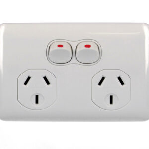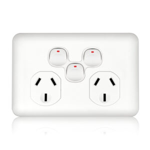 The power type is AC with a single-phase, and it has a rating of 10A, 15A, or 20A at 240V. It features a molded top cover and underbody made of impact-resistant polycarbonate, available in electrical white or black. The switch poles are single, with socket configurations of 1, 2, or 3 gangs and socket outlets…