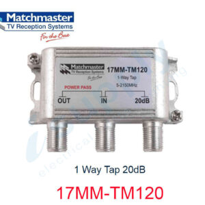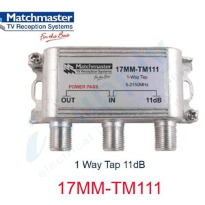 1 Way Tap 17dB 17MM-TM117 Splitters and Taps Matchmaster has a premium range of RF Splitters & Taps ranging from 1 Way through to 8 Way. We cater for both Terrestrial and Satellite frequencies with both Single Port AC/DC and All Port DC Power Pass products available. Features and Benefits Frequency range 5 – 2150…