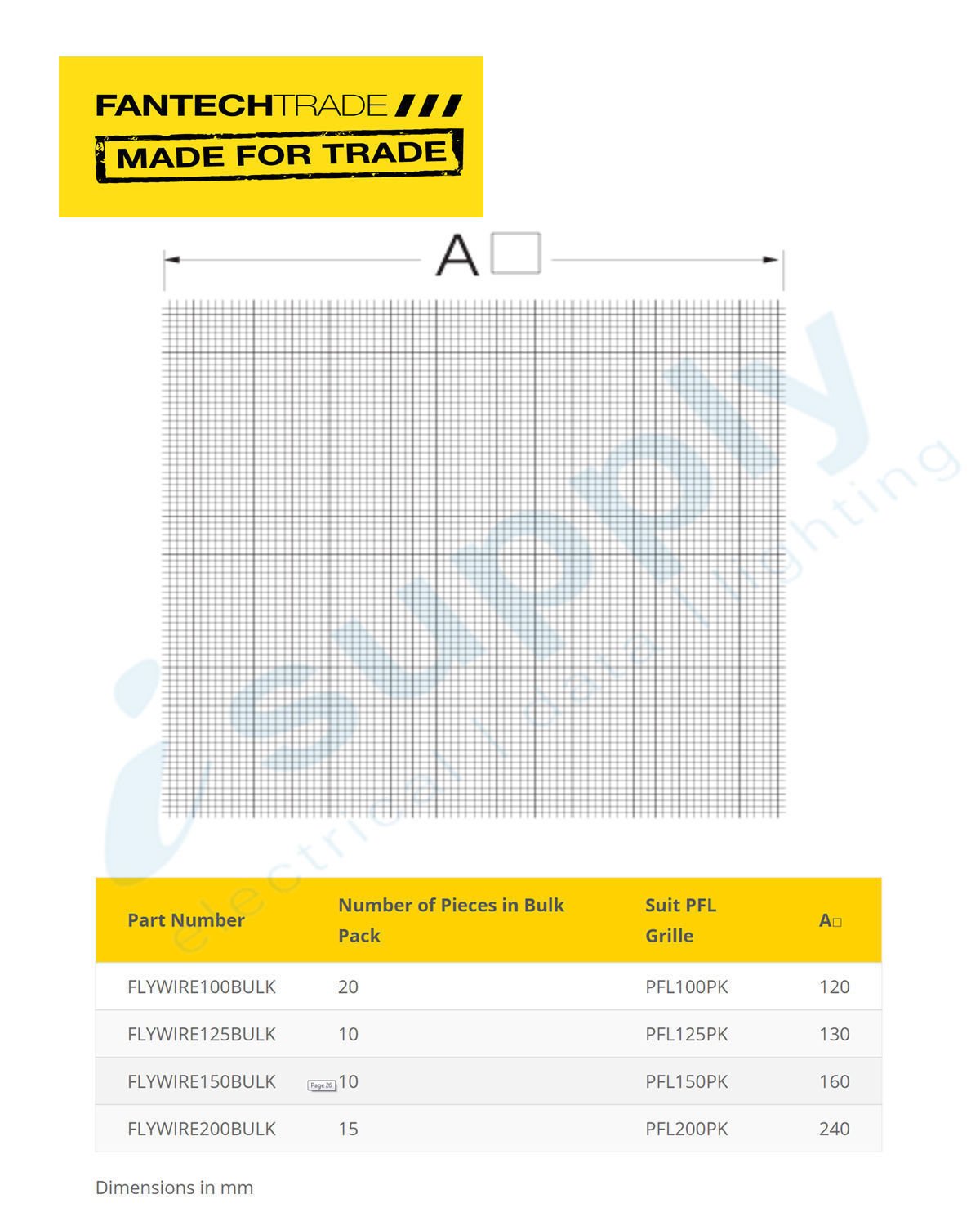 FANTECHTRADE 150mm flywire mesh – BULK, PURCHASE IN QTY OF 10 FANFLYWIRE150BULK