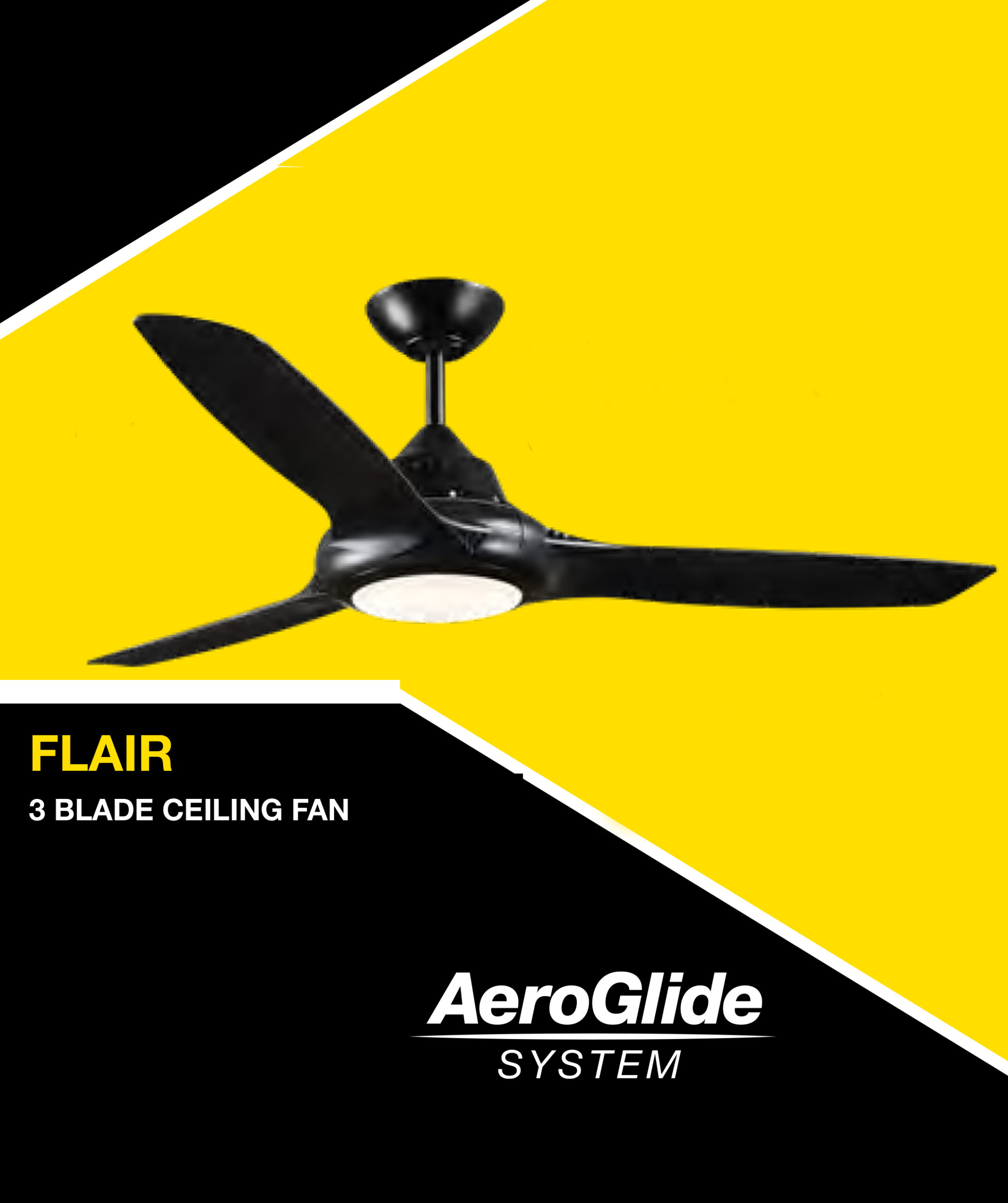 FANTECH Flair ceiling fan 58″ black 3 blade with self ventilation motor & LED light FLR58BK-LED