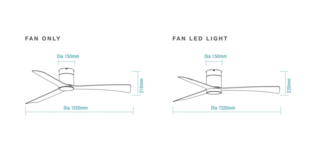 Metro DC Close to Ceiling 3 ABS Blade 1320mm Hugger WIFI & Remote Control Ceiling Fan Matt White