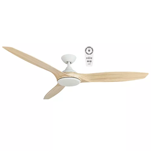 Newport 1420mm 3 ABS Blade DC Remote Control Ceiling Fan with 18w LED Light Tricolour White Satin/Oak