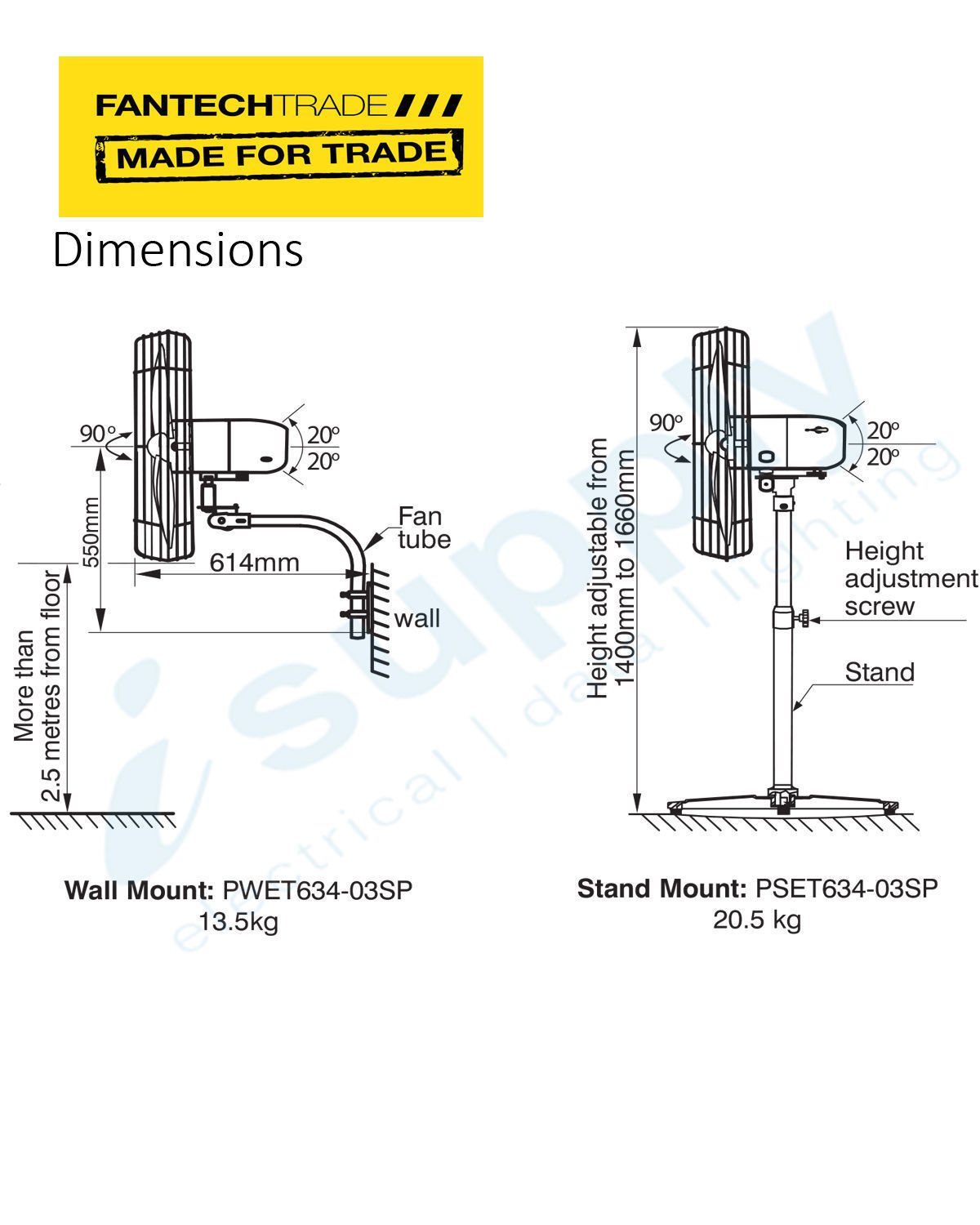 Height of the stand mounted unit is adjustable from 1400mm to 1660mm.