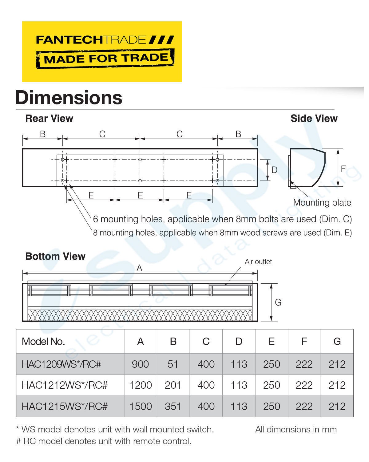 FANTECH Air Curtain wall switch 18m/sec 900mm long HAC1209WS