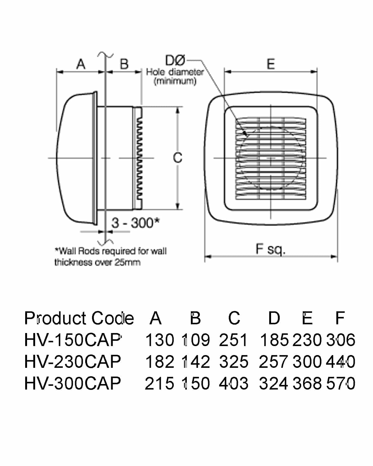 Model No’s: HV-150CAP, HV-230CAP, HV-300CAP.