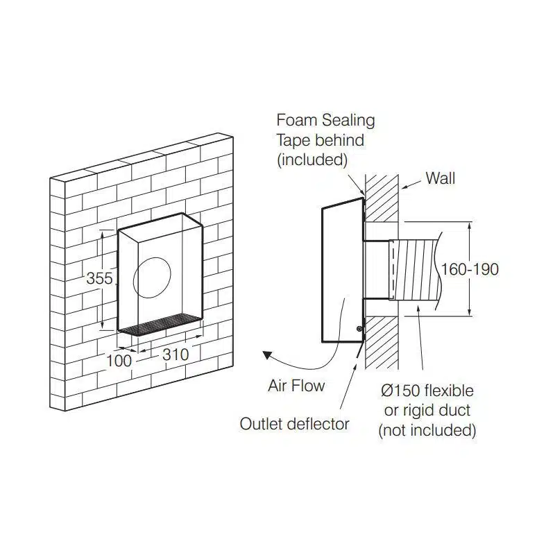- Connects to 150mm diameter duct.