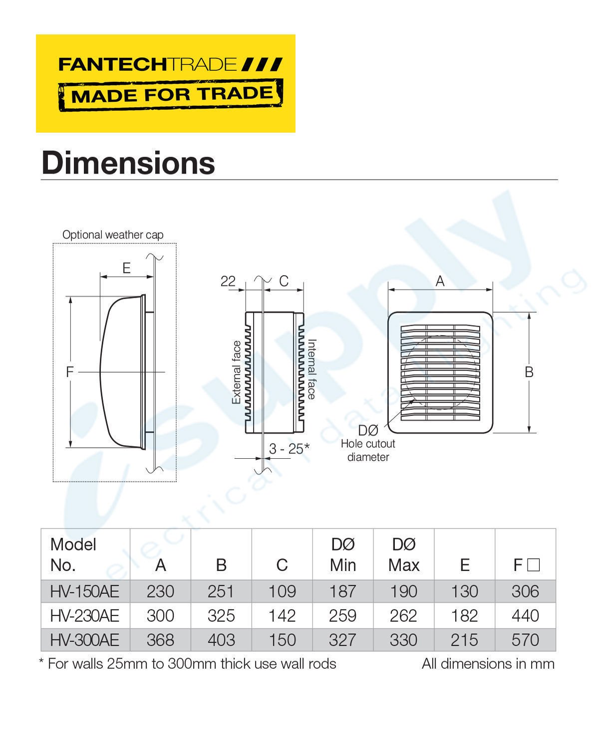 FANTECH Fan wall or window model 300mm 1phase HV-300AE