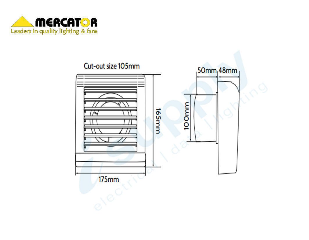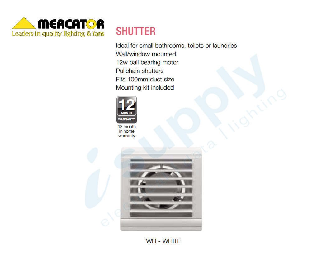 Mercator Window / Wall Exhaust Fan | 100mm Model | Bathroom Auto Shutter BWE231WH