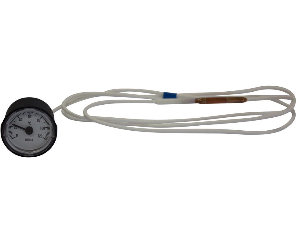 Built around a straightforward analogue mechanism, this thermometer is designed for consistent performance in trade environments. The wide 0–120°C temperature range suits common heating, plant, and equipment monitoring tasks, while the capillary and remote sensor setup allows flexible installation where direct mounting isn’t practical. With no electronics to fail, it’s a dependable choice for contractors who want stable readings and minimal maintenance over the life of the installation.