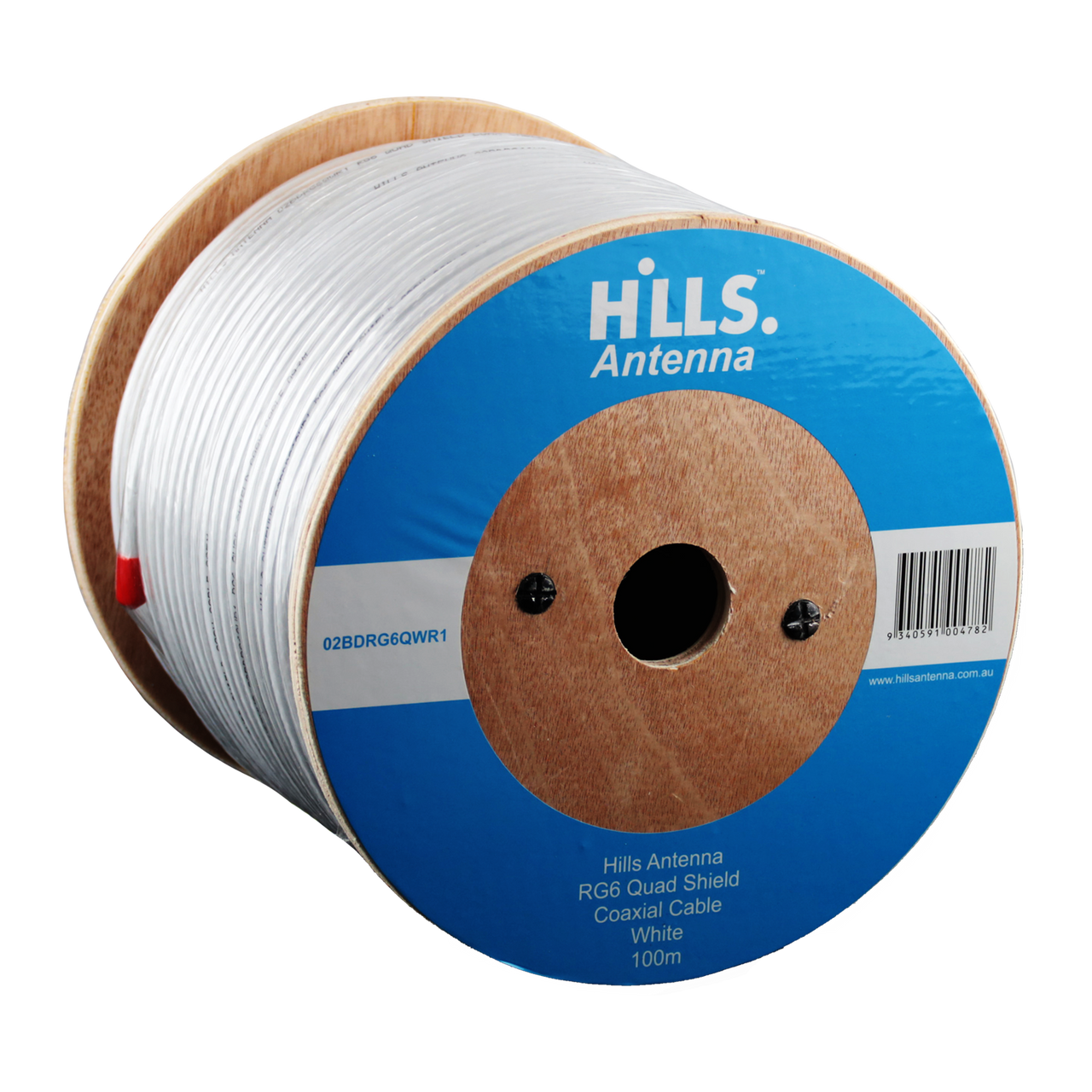 Hills Antenna RG6 Quad Shield 100m Reel – White 02BDRG6QWR1