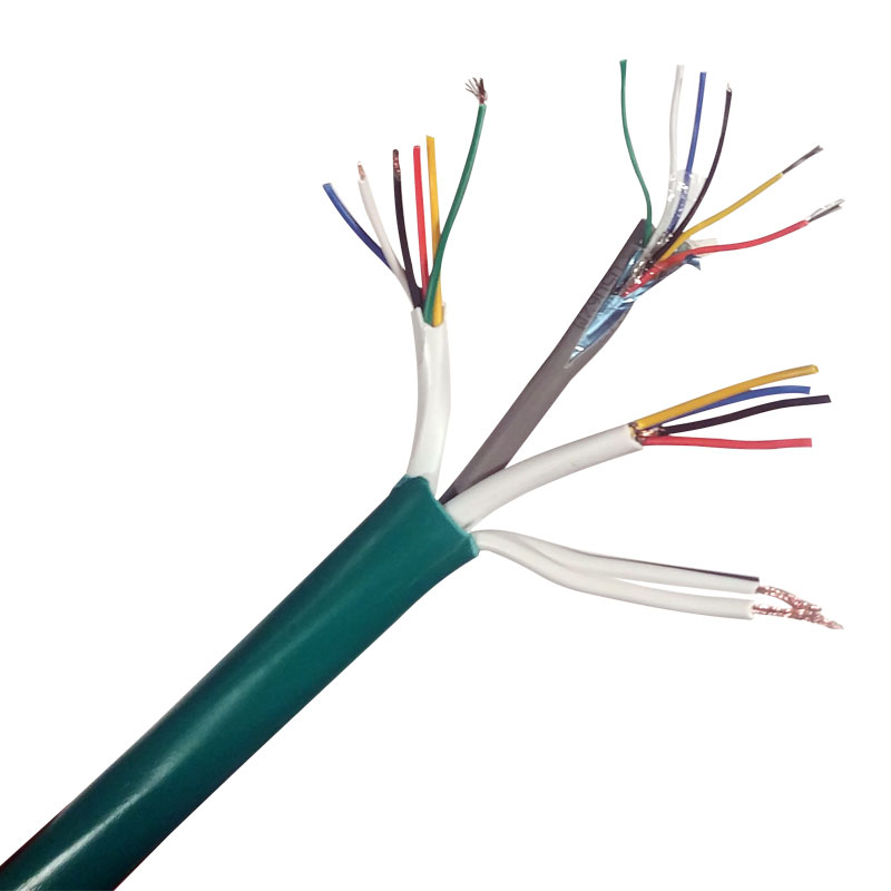 The APAC200G is an all-in-one composite cable, specifically designed for access control systems. The cable consists of 1 x 6-Core access control cable, 1 x 4-Core & 6-Core alarm cables, and 1 x Figure 8 power cable, all encased in a thick green outer sheath.
