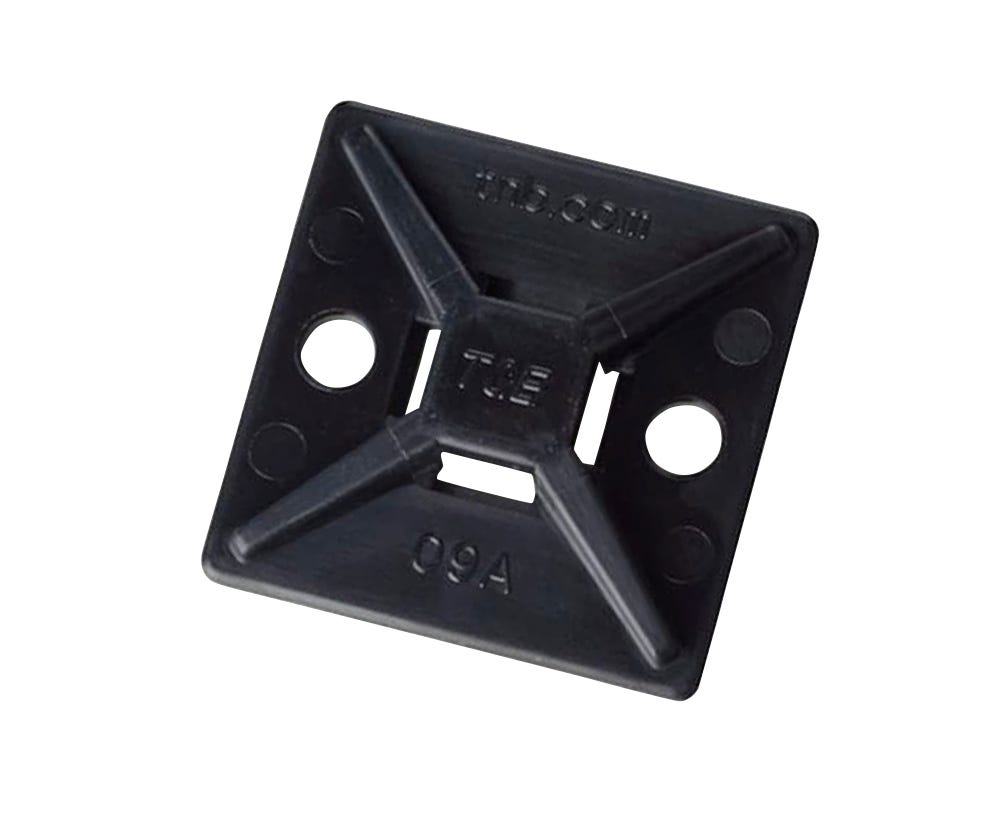 UV resistant nylon cable tie mount with rubber-based self-adhesive base and two holes for additional screws