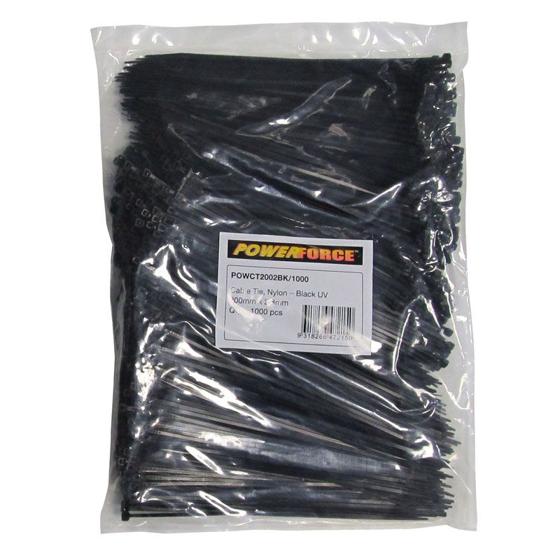 Powerforce Cable Tie Black 200mm x 2.8mm Pack of 1000 POWCT2002BK/1000