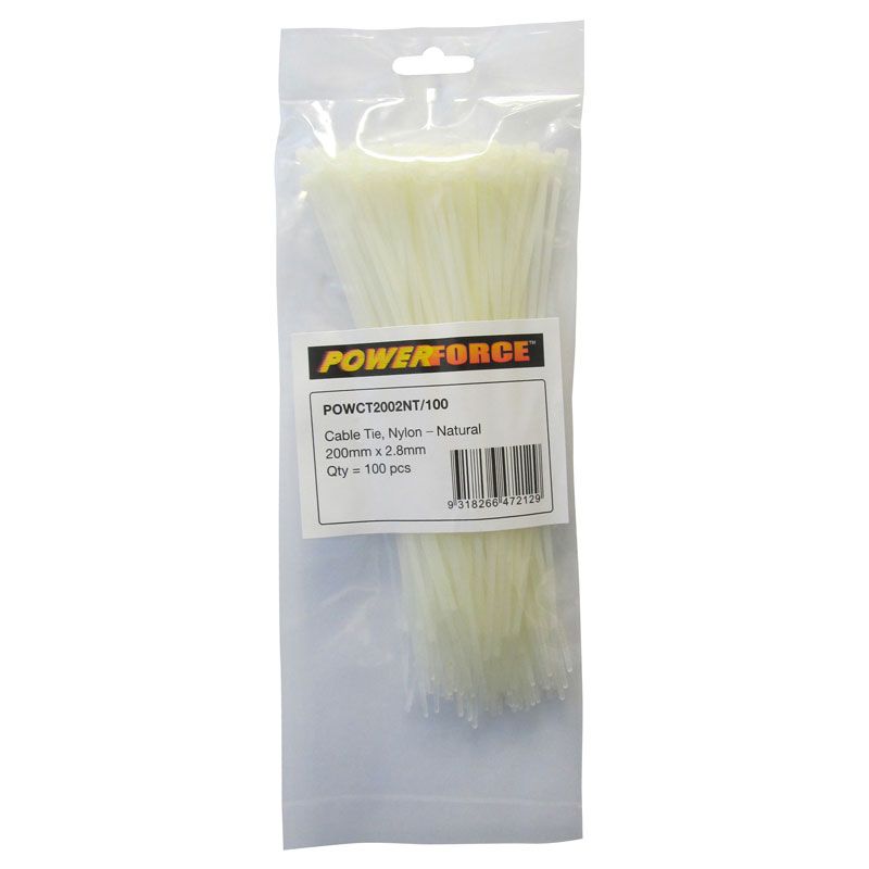 Powerforce Cable Tie Natural 200mm x 2.8mm Pack of 100 POWCT2002NT/100