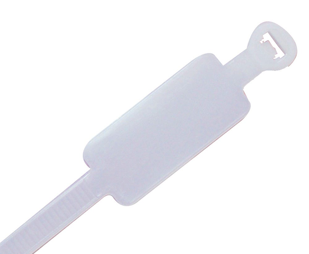The CABAC range of nylon identification cable ties are designed for securing and labelling cable bundles. These ID ties have many of the qualities of our regular nylon cable ties, such as rounded edges, one-piece construction and bent tip for easier insertion and tensioning. As an additional feature, a tag moulded to the tie can be written on with a suitable pen. This type of labelling system allows for the bundle to be both secured and marked with a single tie.?
