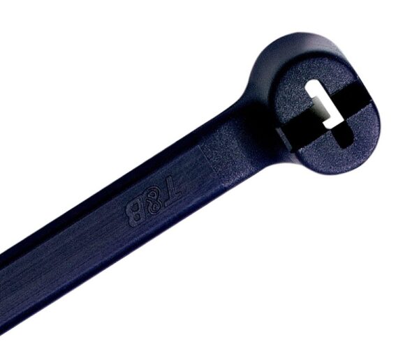 High-performance cable tie made from UV resistant black Polyamide 12 for indoor or outdoor applications