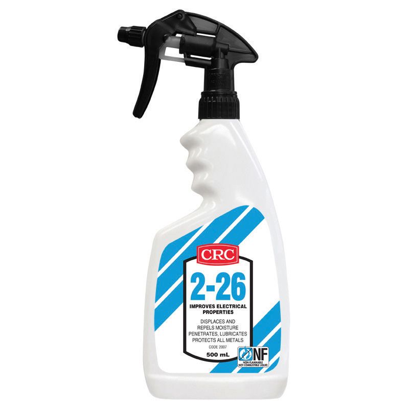 CRC 2.26 is a stable, inert organic formula, especially prepared to prevent malfunction and deterioration due to the effect of moisture and corrosion, extends operational life, reduces down time and maintenance. It displaces water and moisture, seals hard surfaces with a continuous molecular film and never becomes dry, hard or brittle.