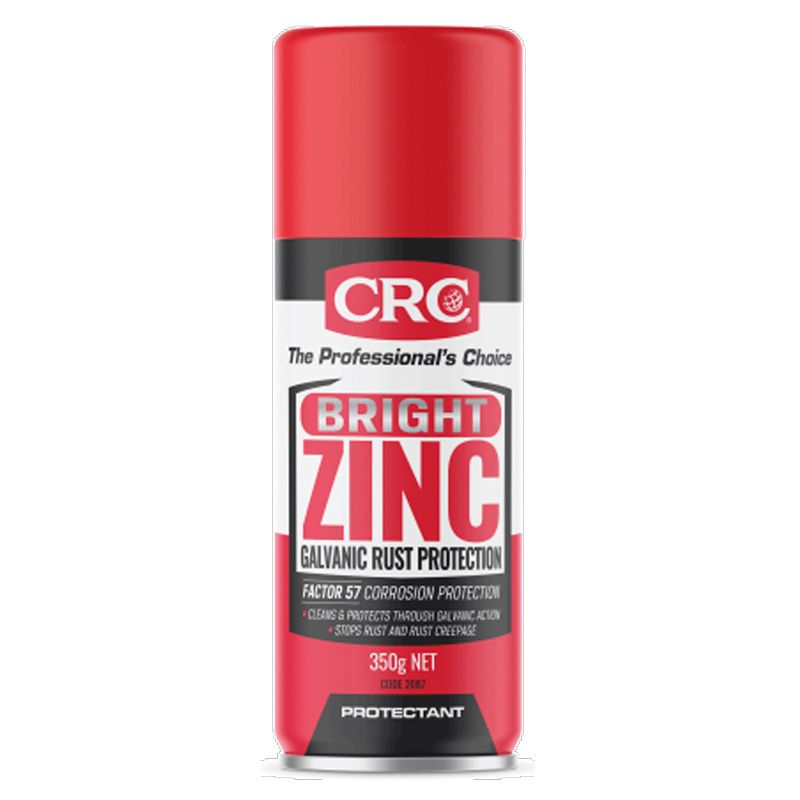 CRC BRIGHT ZINC is a zinc rich paint which produces a highly protective coating resembling the colour of new galvanising. The film is comprised of a high level of special water resistant binder. BRIGHT ZINC contains more than 50% of the highest purity zinc in the dried film, to give galvanic rust prevention if the protective film becomes damaged.