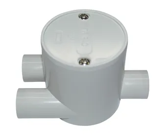 • Moulded PVC grey junction box with a circular shape and deeper profile.