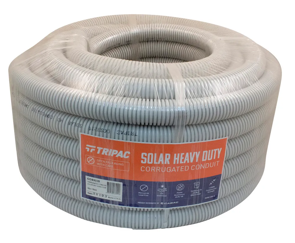 Tripac Solar Heavy Duty Corrugated Conduit is suitable for safeguarding and concealing electrical cables in residential or commercial solar PV installations.