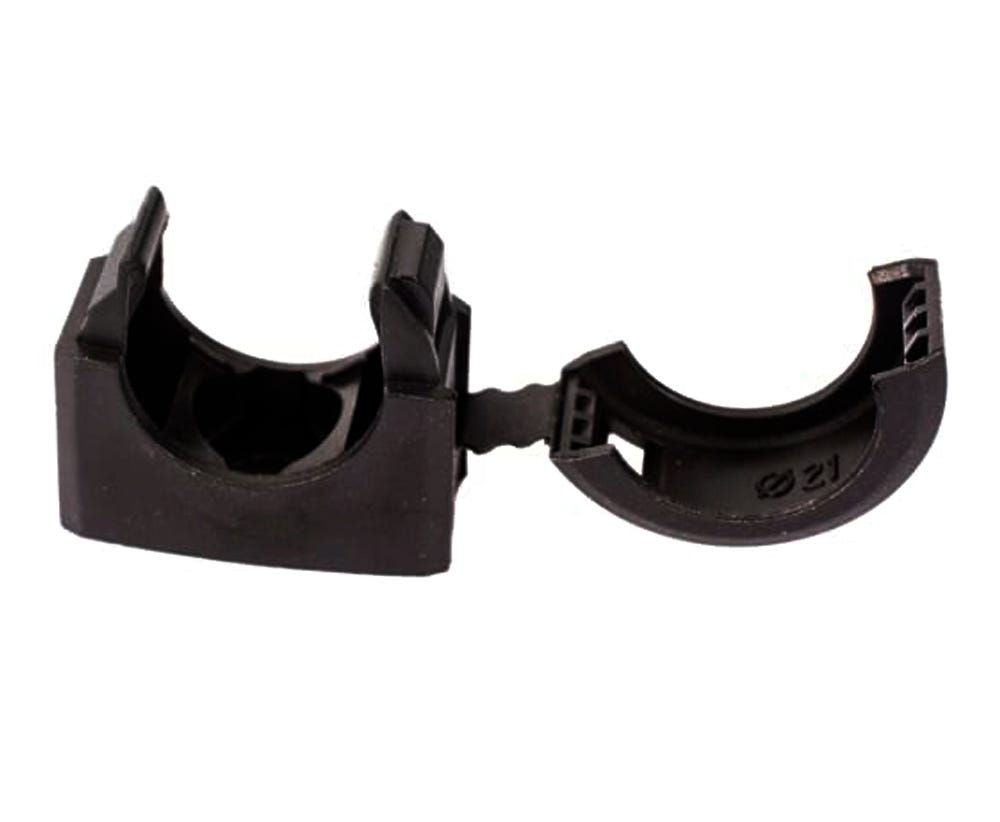 Durable 28mm Nylon 66 conduit clip with integral lid for fast, secure, and reliable conduit installations.