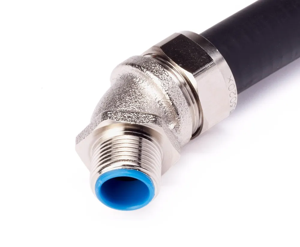 - Nickel plated brass liquid tight 45 degree fitting, presents a male thread