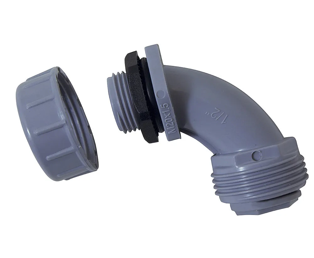 - Grey PVC 90 Degree Elbow Termination for our CNM range of Flexible PVC Conduit High Performing Chemical Resistance and Mechanical Strength