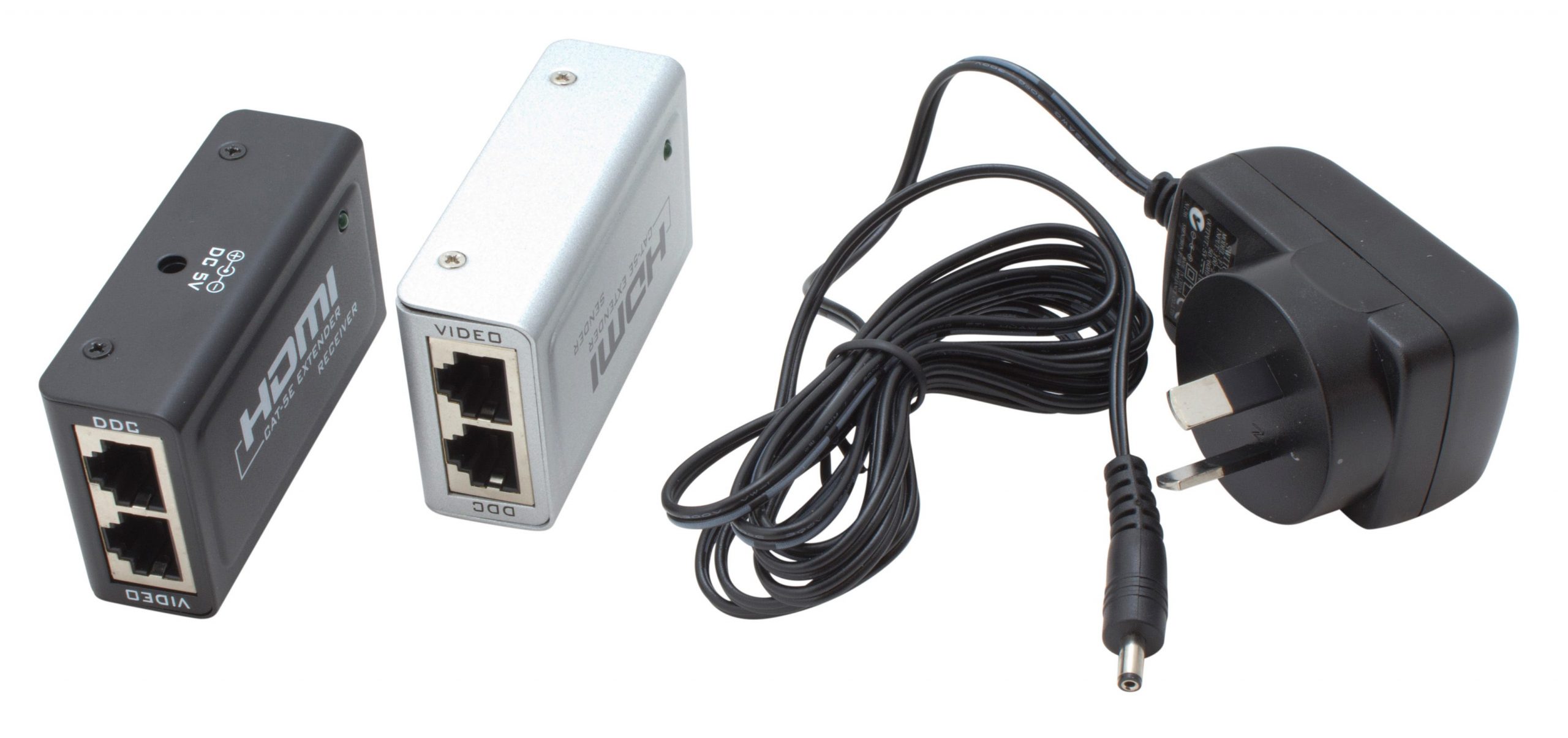 A sender converts from a HDMI cable connection to 2 x RJ45 sockets. This means that 2 x CAT6 patch cables, up to 60m, can be utilized. At the far end, a receiver