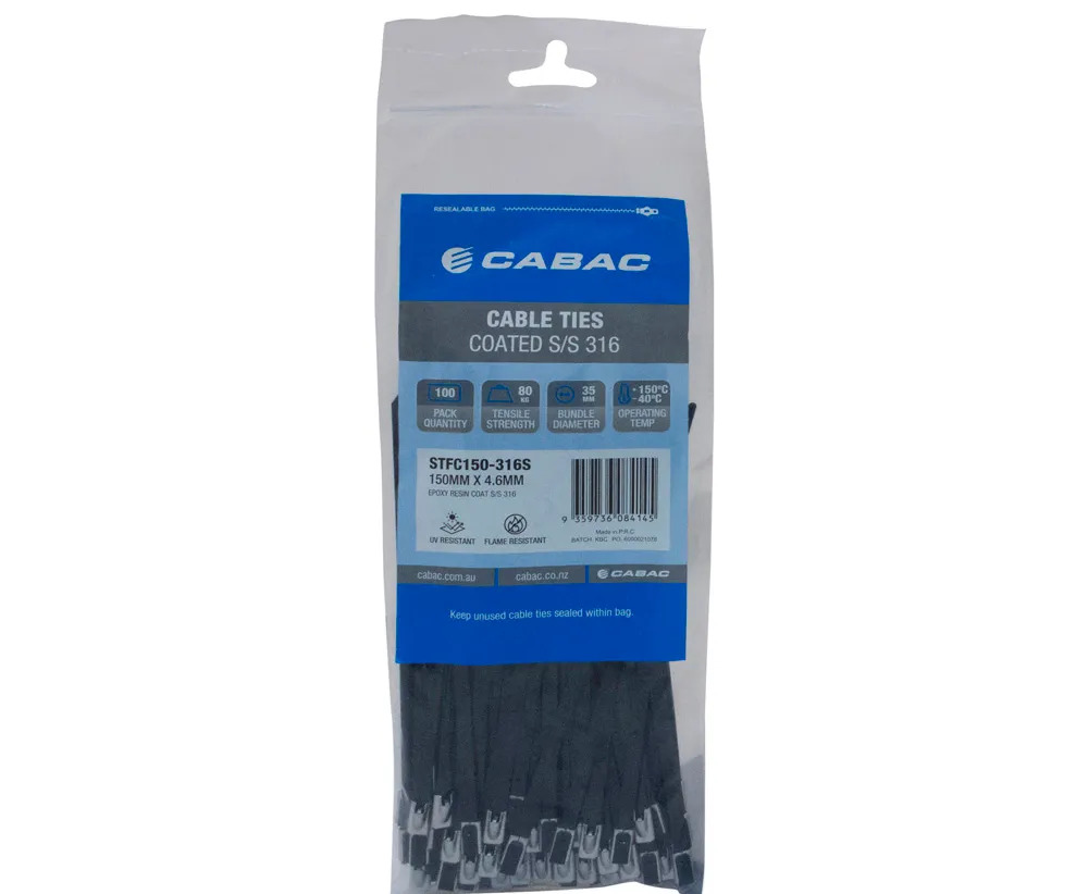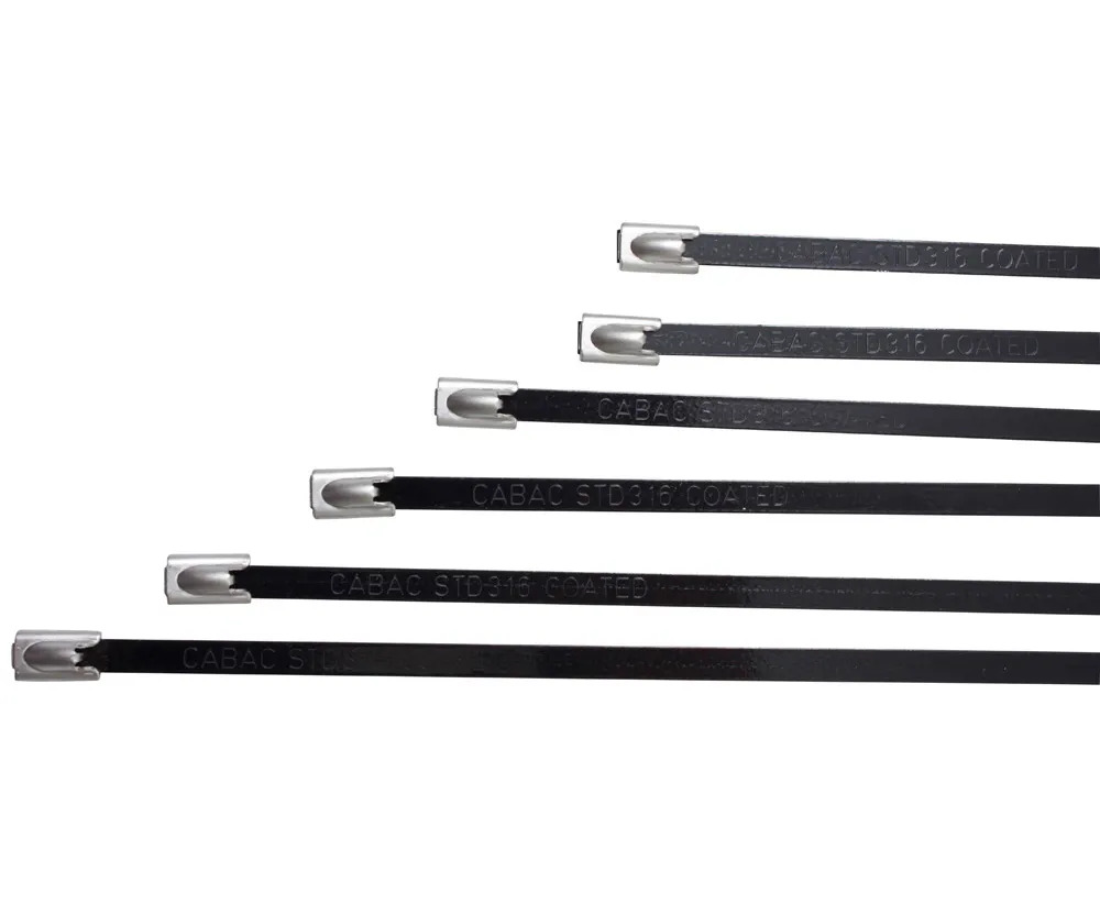 CABAC Standard series stainless steel cable ties provide a durable method of cable bundling that can be installed quickly and easily. These metal ties are made from 316 grade stainless steel, with an epoxy resin coating that is UV resistant.